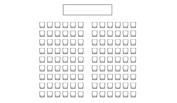 An ideal option for pitches and presentations, this seating arrangement provides the perfect setup for medium-sized group sessions of 14 to 50 people.