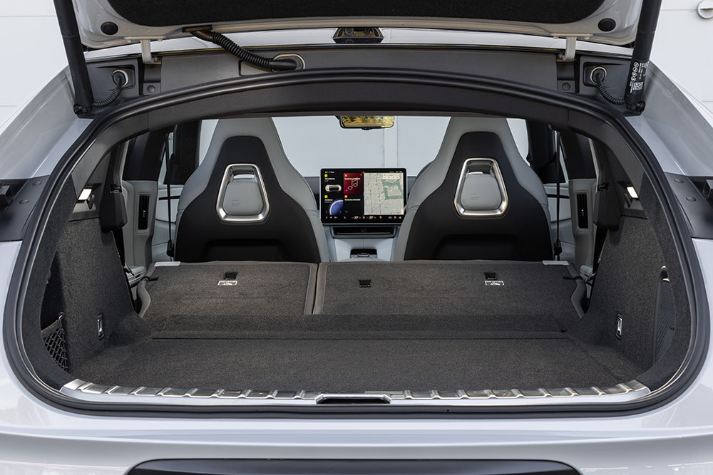 Both variants feature the same 100kWh NMC lithium-ion battery utilising 400V architecture. Charging of the 100kWh battery can be achieved in 30 minutes (10-80%) on a 200kW DC fast charger or 5.5 hours (0-100%) on a 22kW AC charger, provided you’ve opted for the Plus Pack.