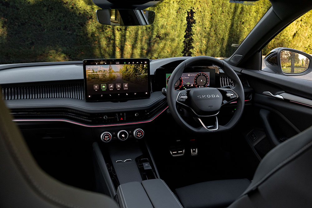 Drive is channelled to all four wheels to ensure confident all-weather grip, with handling further aided by Skoda’s Dynamic Chassis Control (DCC+) system which automatically adjusts the adaptive dampers to firm or soften the ride, while countering body roll and pitch for better comfort and optimal driving dynamics.