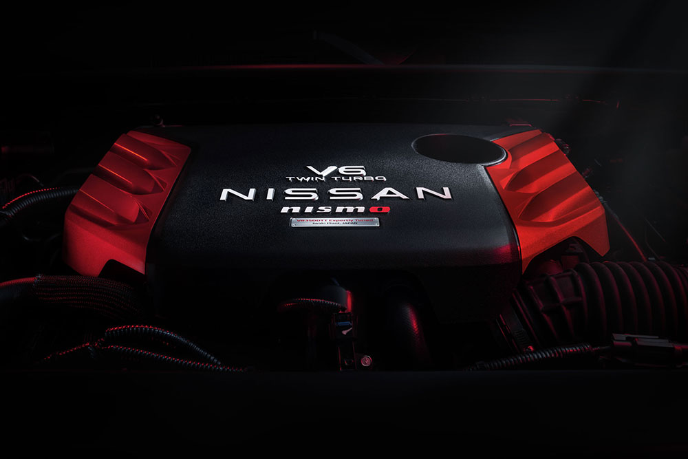 The Nismo engine is identified by a distinctive red engine cover and commemorative metal plate that marks each V6 as having been assembled at Nissan’s famed Iwaki Plant in Japan.