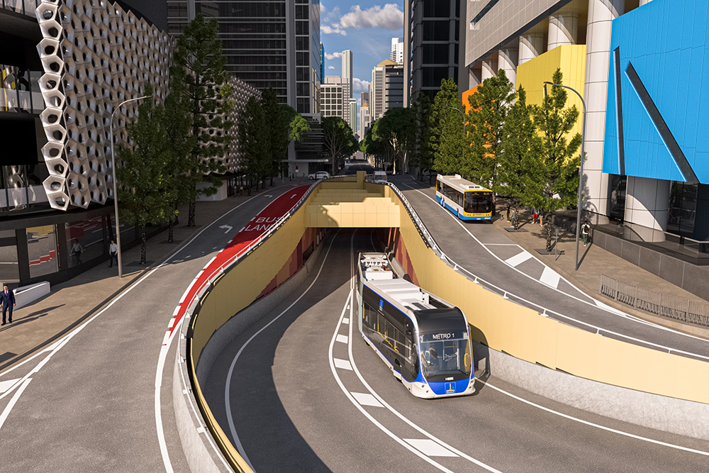 The project will not only introduce the new Metro fleet and supporting charging technology but will also see the delivery of new and improved infrastructure including a new tunnel beneath Adelaide Street, upgraded stations including Cultural Centre station and enhanced streetscapes to create greener, shadier public spaces.