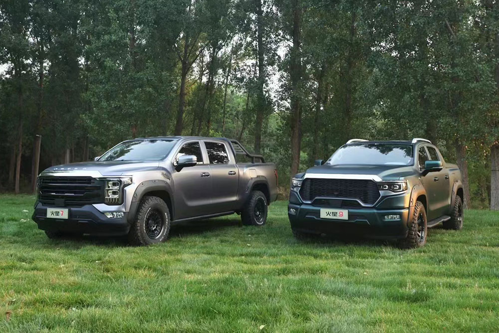Aside from styling, another key differentiator between the V7 and V9 is the former features a load-oriented live-axle leaf spring suspension and comes in both 4x2 and 4x4 guises, whereas the V9 is full-time 4x4 only, boasts a live rear axle with coil springs and is slightly larger dimensionally, almost the size of an F-150.