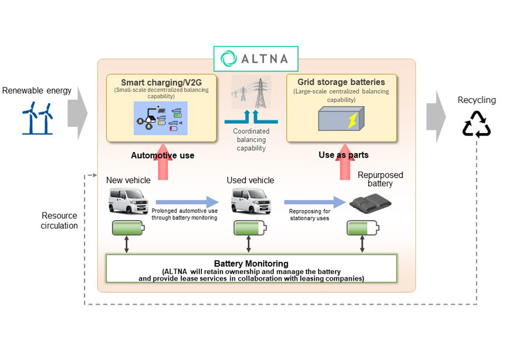 ALTNA will also conduct an electric power business to repurpose end-of-life EV batteries and manage these as grid storage batteries.