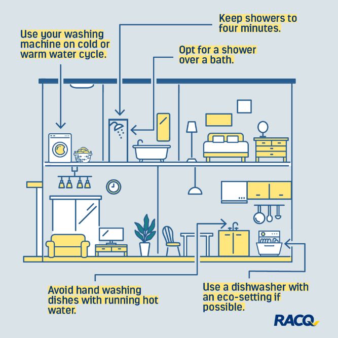 - Install water-efficient tapware and showerheads so you’re not using more hot water than you need to.