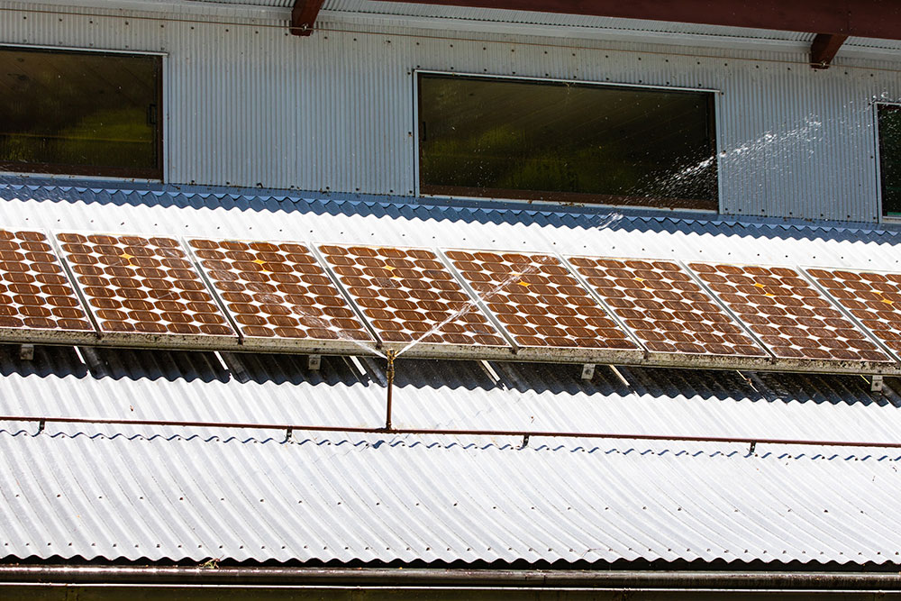 The sprinkler system designed to reduce the threat of bushfire at the Wild Mountains facility.