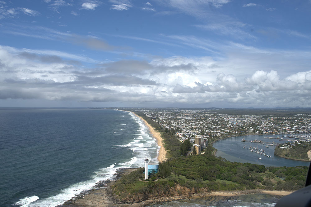 An aerial view of the Sunshine Coast on an Oceanview Helicopters flight.