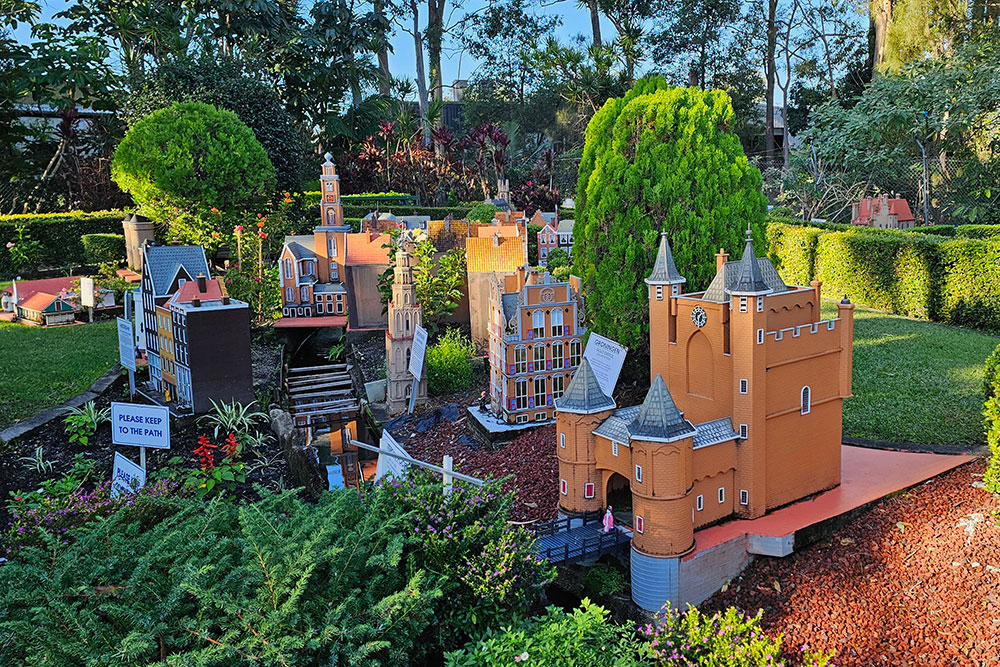 A little farther up, on the opposite side of the Pacific Highway, is The Clog Barn. Walk through the shop, (literally) packed to the rafters with everything Dutch, then outside into the garden to discover a miniature village with replicas of buildings and cultural attractions from Holland. Each piece was lovingly handmade by retired builder, 91-year-old Thomas Hartsuyker.
