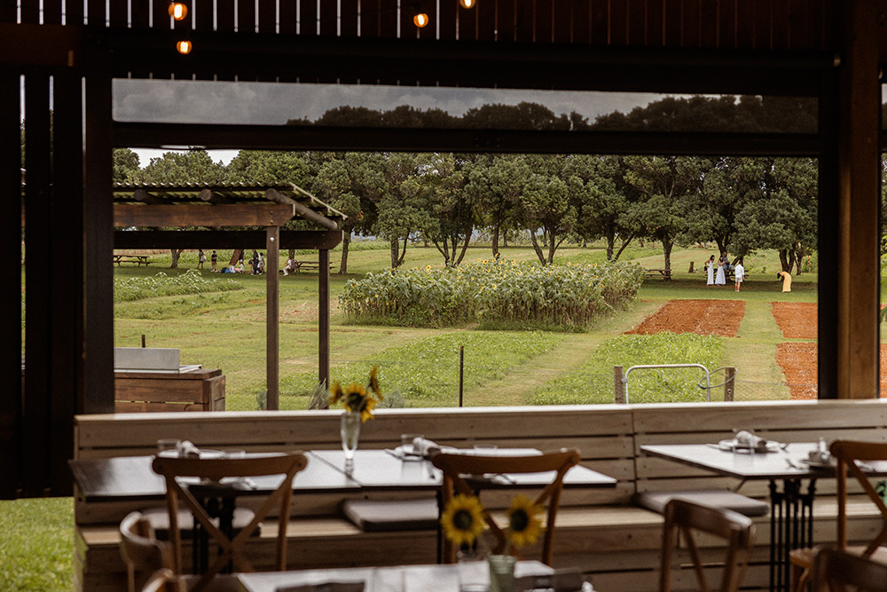 Guests can soak up the farm views while dining, or purchase a farm pass and venture into the paddocks to pick sunflowers, collect macadamia nuts and visit the beloved rescue pigs.