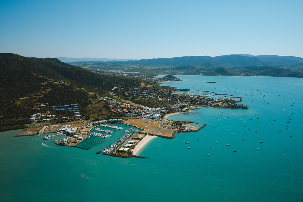 An aerial view of Airlie Beach. Photo Tourism and Events Queensland.