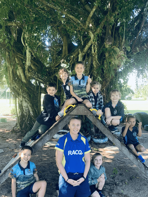 RACQ Education Specialist Janelle Baker with students at El Arish State School.