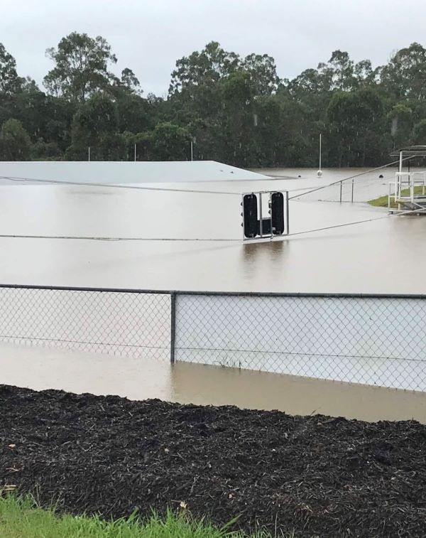 During and after the 2022 floods at Cooloola Coast Kart Club.