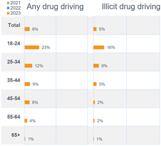 As drivers aged, the prevalence of drug driving dropped but was still shockingly high with 8% of 25 to 34-year-olds and 5% of 35 to 44-year-olds admitting to the dangerous and illegal behaviour.
