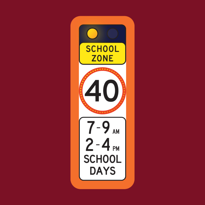 There are many school zones with enhanced school zone signs in Queensland. These signs feature flashing lights that operate while the school zone speed limit is active.