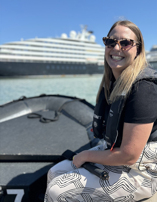 First up, I hopped into one of the Zodiacs for a quick cruise around the channel, and from the water, Scenic Eclipse II looked even more impressive.